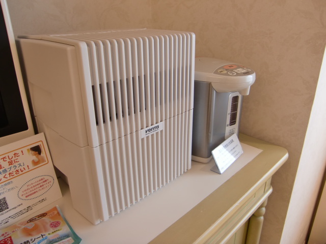 ↑赤ちゃんにやさしく、加湿器、ポット、電子レンジもあります。