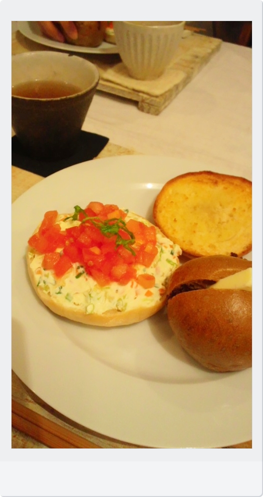 プレーンにベジタブルクリームチーズを塗って、試食。