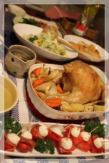 鶏の丸焼き(ピラフ詰め)を作りました。