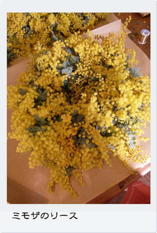日曜日、野の花屋アパートでNyaさんのミモザリースのワークショップに参加しました。