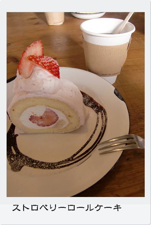 リースを作った後は、カフェシバケンさんのいちごのロールケーキと紅茶をいただきました。