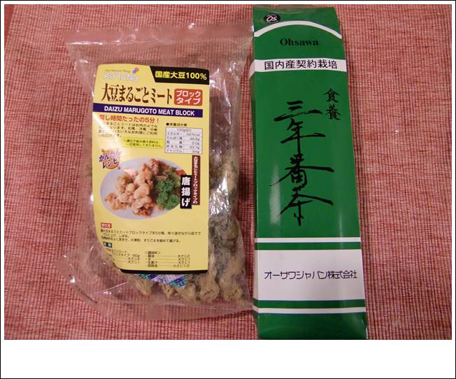 帰宅途中に、早速、三年番茶と大豆たんぱくを買いました。