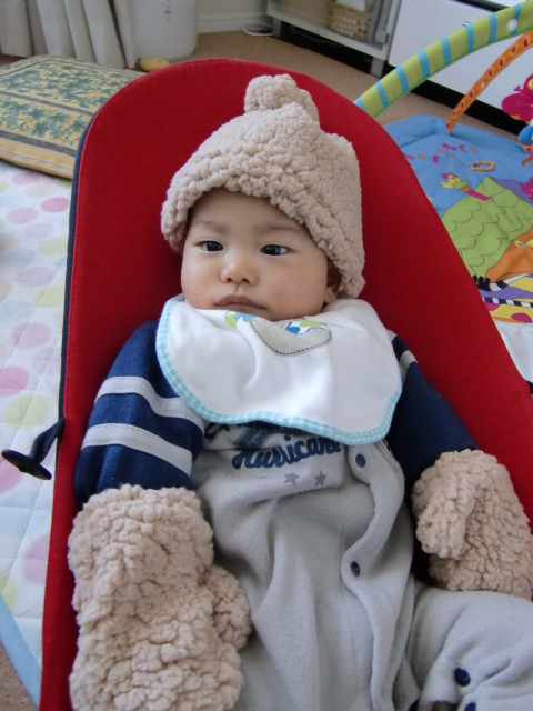 おそろいのニット帽&ミトン。