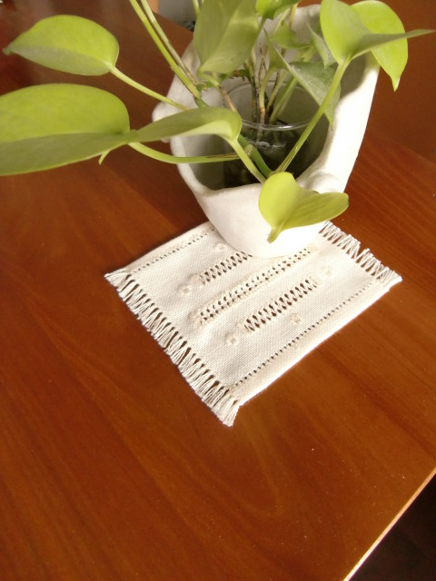 とても丁寧に教えていただき、みんなで楽しくドロンワークのドイリーを進めていきます。