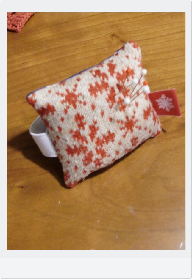 SMILEさんのオマケ生地で、コースターと針刺し(手首に付ける)を
