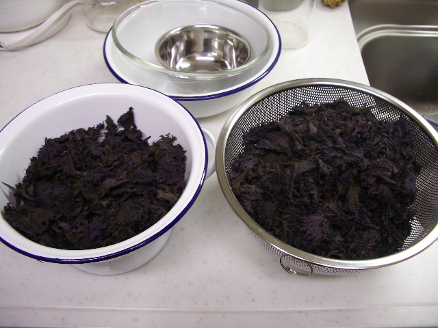 と格闘しながら、無事、赤紫蘇を漬けました。