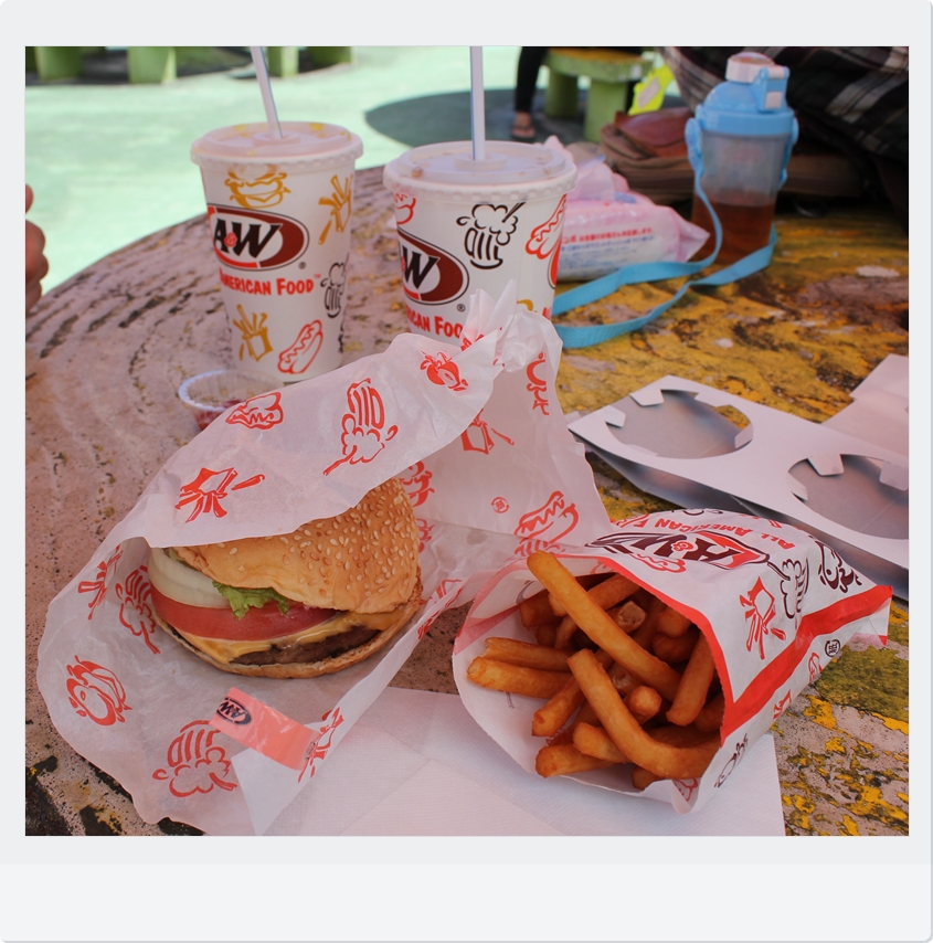 お昼は、A&Wのハンバーガー!