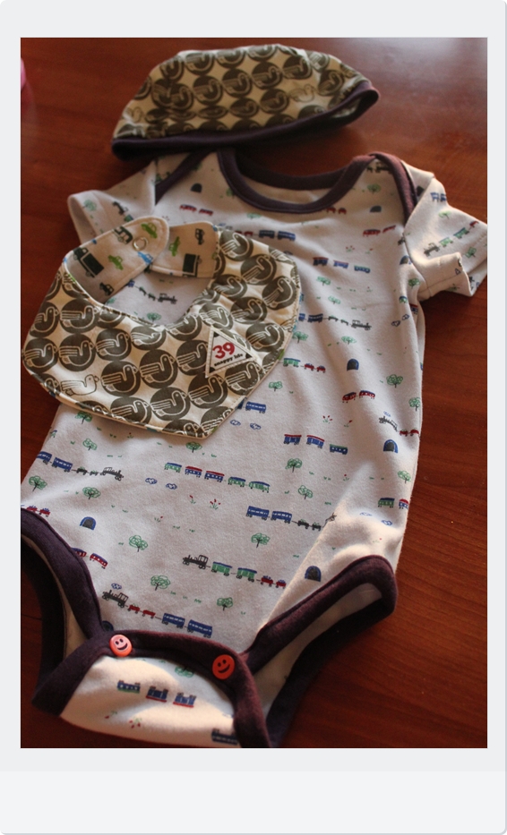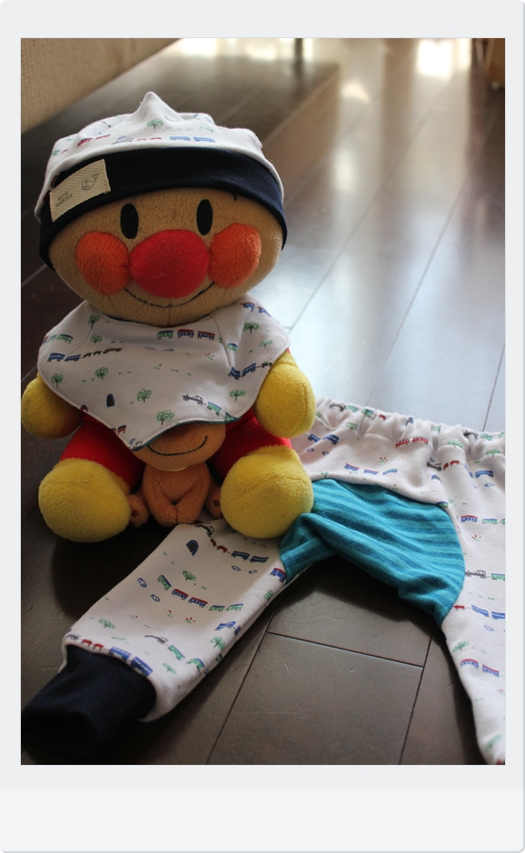 帽子とスタイは、大大大好きなsnappylifeさんの鳥柄生地です。